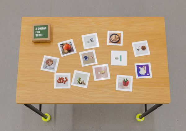 A Dollar For Scale was shown in their exhibition: A is For Apple. Loosely modelled after a Montessori classroom, the exhibition features works that take the form of games, puzzles, books, building blocks, flashcards, and other teaching aids. Elemental units such as numbers, letters, and basic shapes are mobilized as conceptual tools to parse how patterns both structure our thinking and emerge from it.
